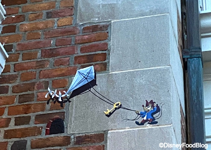 Meanwhile, in the American Adventure, we spotted a much more obscure character…Amos from the Disney short Ben and Me! Honestly, we kind of love an underrepresented IP, and this little kite-flying mouse is perfect for this patriotic pavilion.