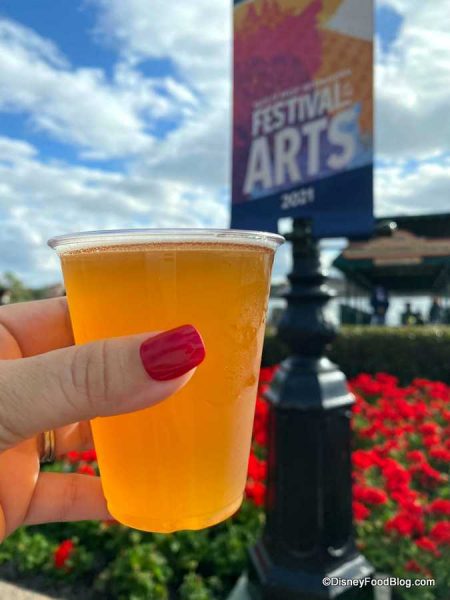 For the Festival of the Arts, the Citrus Blossom booth once again features only drink options, most of which are the same as some of the other festivals, except there is a beer option that is NEW for 2021 (so you know we’ll be trying that, more on this drink in a moment).