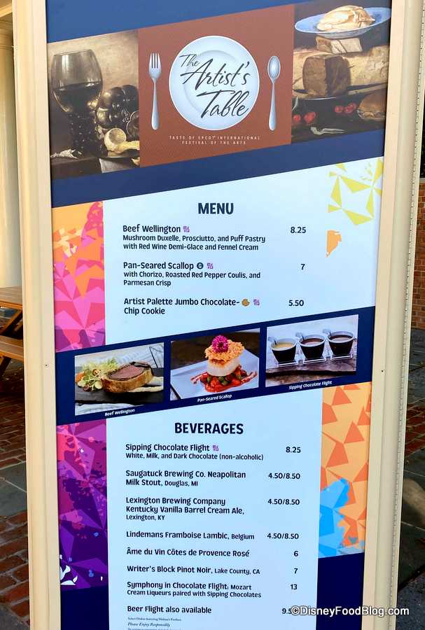 The main attraction at any EPCOT festival is the food, of course, so let’s head over to The Artist’s Table in the American Adventure Pavilion to see what we could find!
