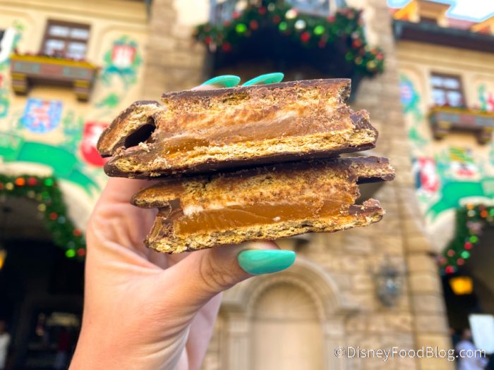 Although the new s’more is pretty tasty, we thought it might be even better warmed up. And while delicious, we didn’t think it stacked up again many other amazing treats (like the Caramel Corn, or example) at Karamell Kuche. So unless you’re really in the mood for a s’more treat or a s’mores lover, you may wanna try something else from this spot. But it’s nice to be able to have a s’more at Disney World without needing to start a bonfire!