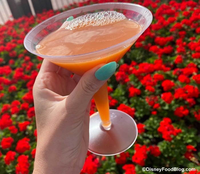 It’s best to snap your photos of this drink right when it’s served because the color contrast is most visible before you start sipping. Does anyone else think they would see this on Mulan’s feed? The flowers look like they were picked from her dad’s garden and sent to EPCOT for all of us to enjoy!