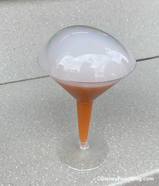 Unfortunately, it was pretty windy when we snagged our drink (you know how it is near the World Showcase Lagoon), so we were only able to get one quick shot of the bubble before it was taken by the wind.