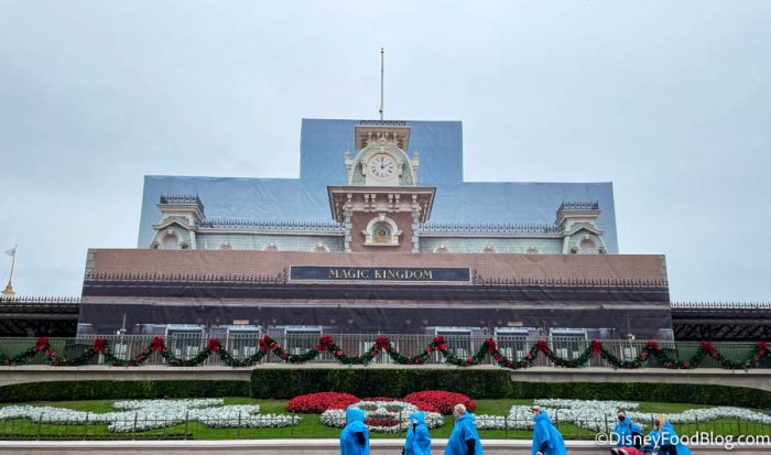 On a gloomy day in Magic Kingdom, the totally inconspicuous Main Street Train Station scrim seems to stick out a little bit more. No noticeable changes have been made to the indefinitely closed station.