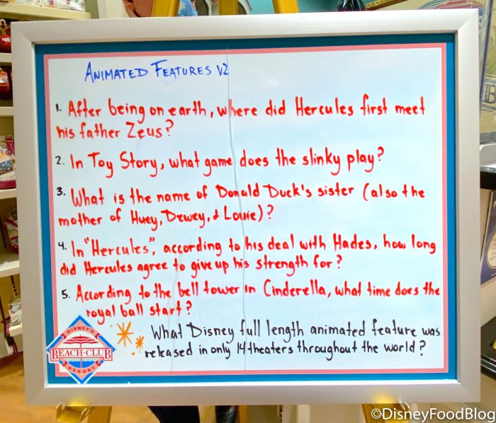 As you’re making your way around the Beach Club Resort, you can also test your Disney knowledge with the Animated Features Trivia Board! How many of the questions did you get correct?