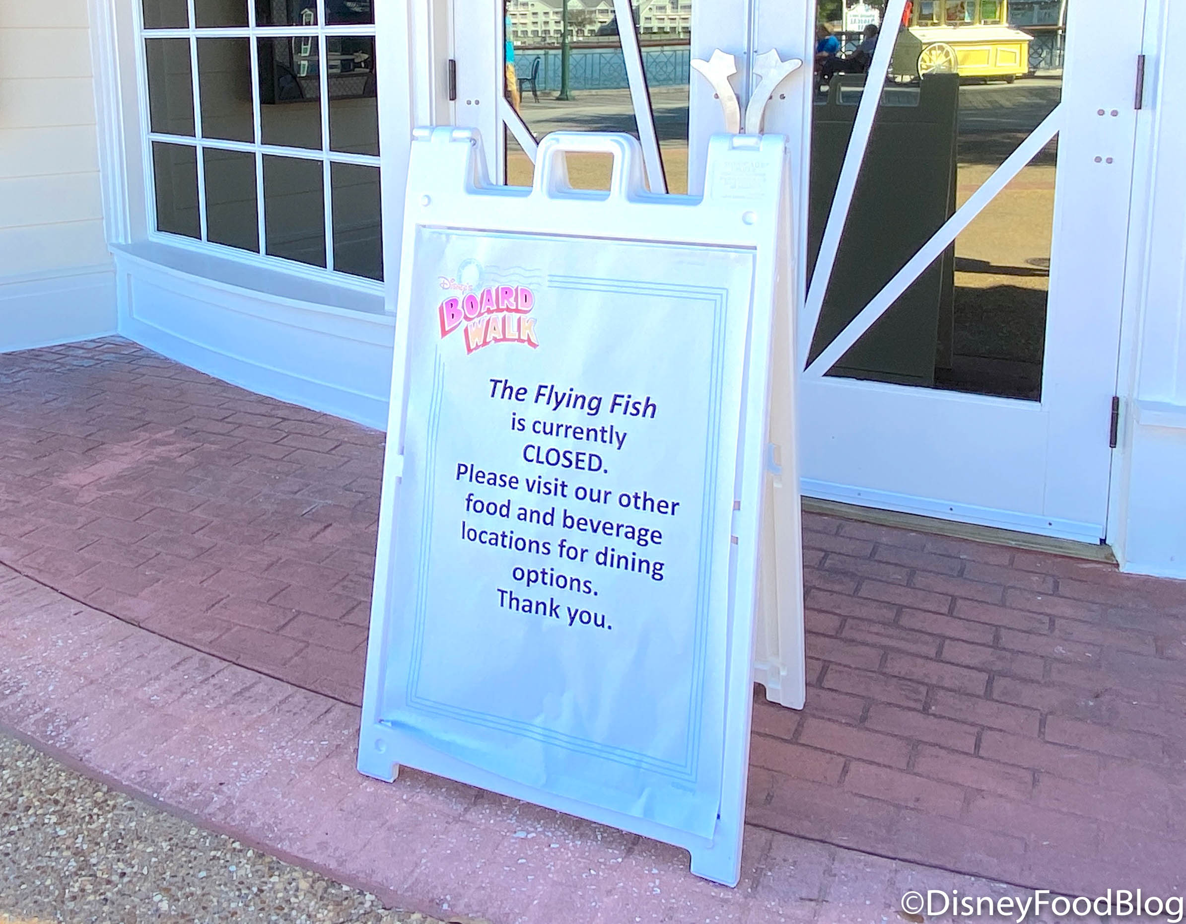 Although there are plenty of spots to eat around the BoardWalk, the Flying Fish had a new sign about the restaurant being closed that we haven’t seen during our previous visits!