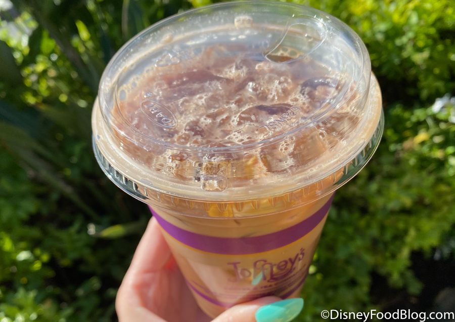 This latte is definitely for people who like mochas or chocolate paired with their coffee. People who take their coffee without sugar may want to avoid it! We spotted the drink special at the Joffrey’s Coffee kiosks in Disney’s Hollywood Studios, EPCOT, and Animal Kingdom so far. Follow along with us as we review all seasonal treats, sweets, and drinks over the year!