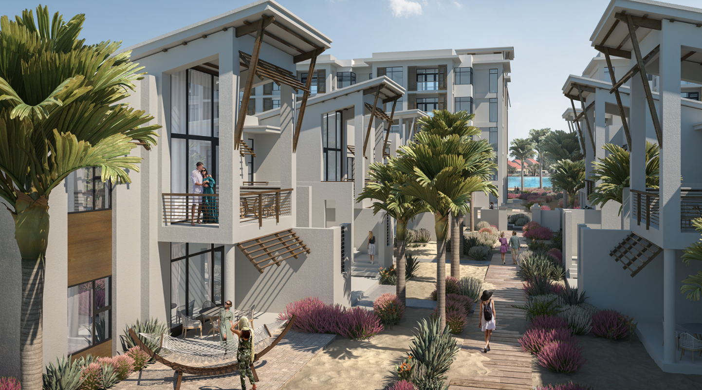 The first phase of the project will open with about 1500 bedrooms spread across vacation homes, flats, villas, and the Conrad Hotel. The hotel itself will debut with 433 rooms, 40,000 square feet of meeting space, a spa, and numerous dining options. Bookings for the resort are slated to launch in 2022 and the first guests will likely arrive in Summer 2023.