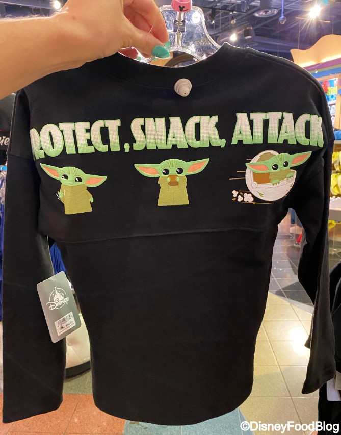Baby Yoda is more relatable than ever with the “protect, snack, and attack” design on the back of the spirit jersey for $29.99…