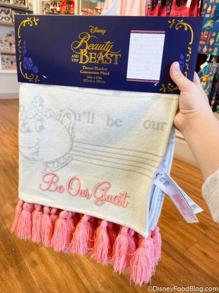 Our last stop is Disney Home where we’re taking a look at a new Beauty and the Beast collection featuring a Be Our Guest Throw Blanket for $39.99…