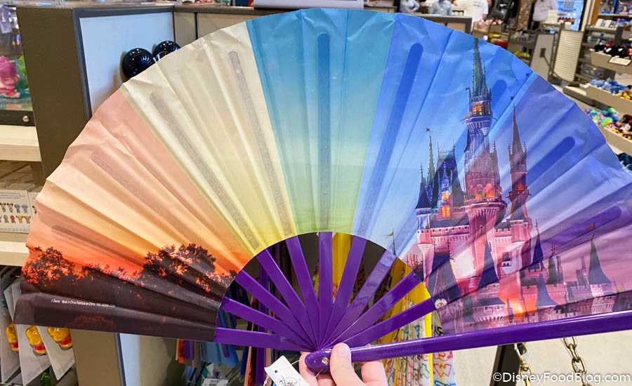 We love checking out the fans. They’re beautiful AND practical on those hot California days. We spotted four new designs for $9.99 each: one with Cinderella Castle…
