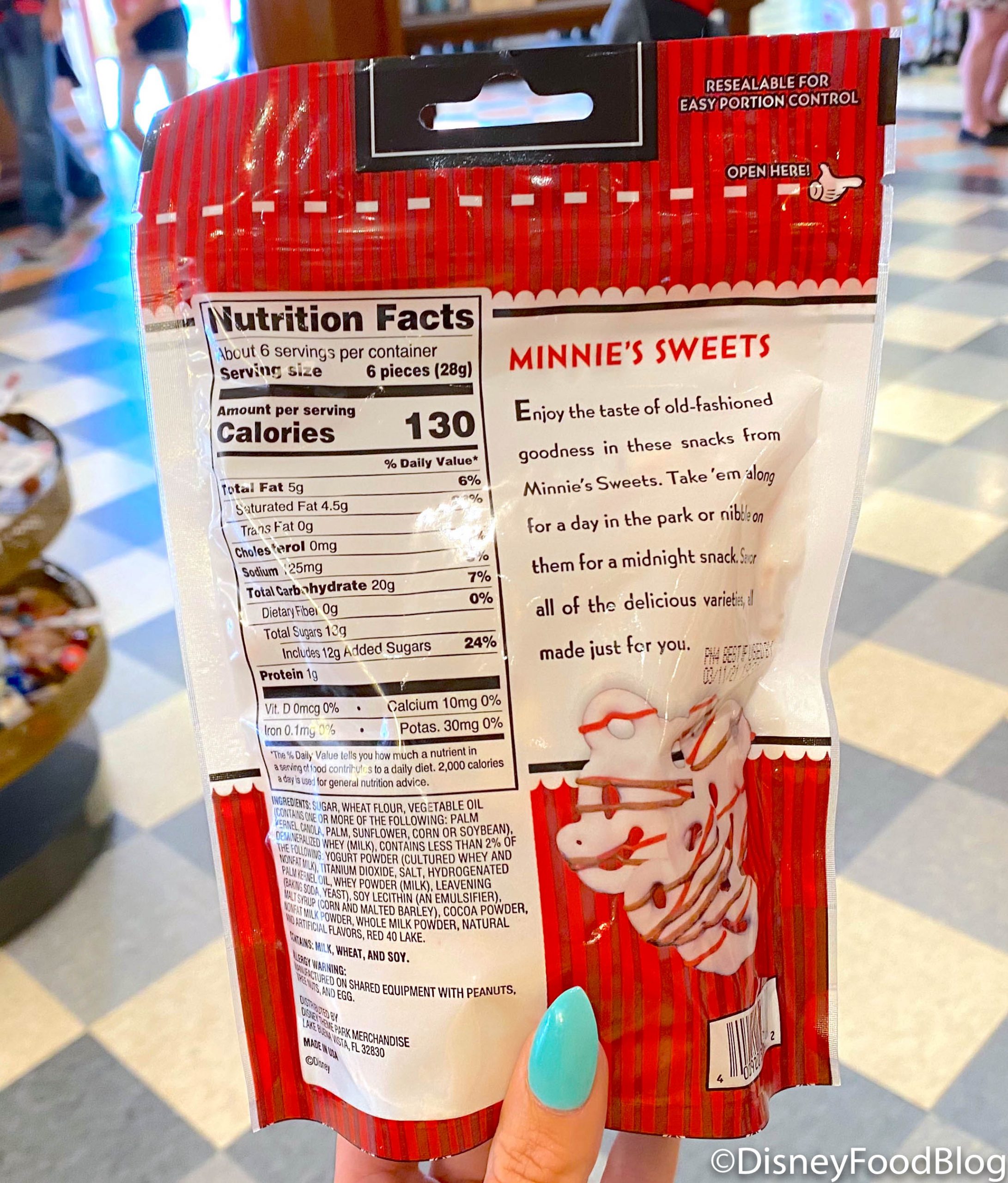 If you’re looking for a treat to snack on quickly before you hop to your next attraction, the Minnie’s Sweets bags are great options that you can reseal to eat later. The bag’s design has been changed to a more classic and simple red and white option…
