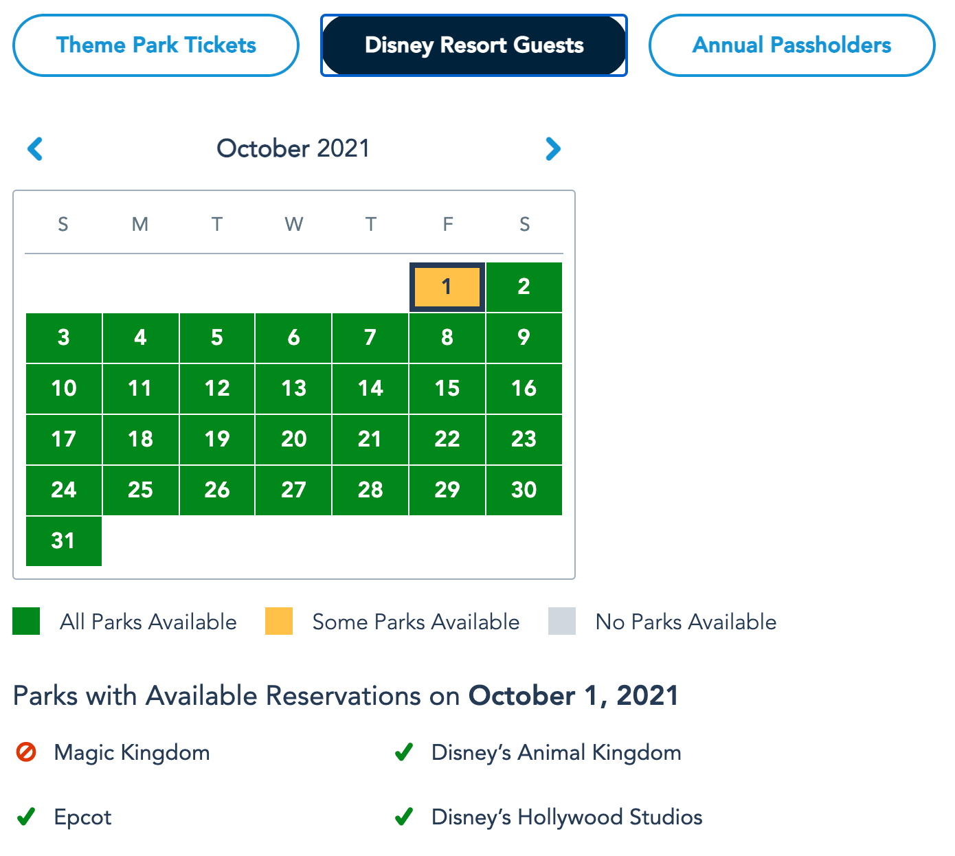 This means that at this time, about nine months in advance, guests from all three ticket categories will be unable to reserve entry into Magic Kingdom on the 50th Anniversary.