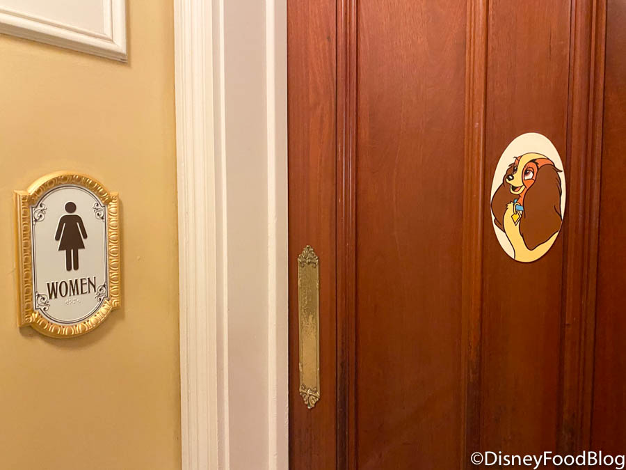 Even the bathrooms are themed with Lady on the door of the women’s bathroom…