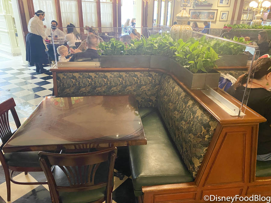 Then, there is the outdoor patio, which is a spot we recommend asking for if there is good weather on the day you visit! Although parades are not currently happening, there are character cavalcades! And this is the perfect spot to watch those go by while you dine.