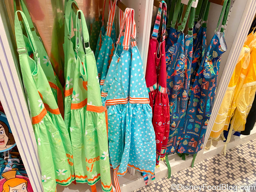 The Main Street Confectionery might be the place to get fresh cotton candy or Rice Krispie Treats, but it’s also home to the newest round of Disney aprons in the Magic Kingdom! Previously, we spotted these cuties over in Disneyland’s Downtown Disney, but they’ve flown over onto Disney World’s shelves now too.