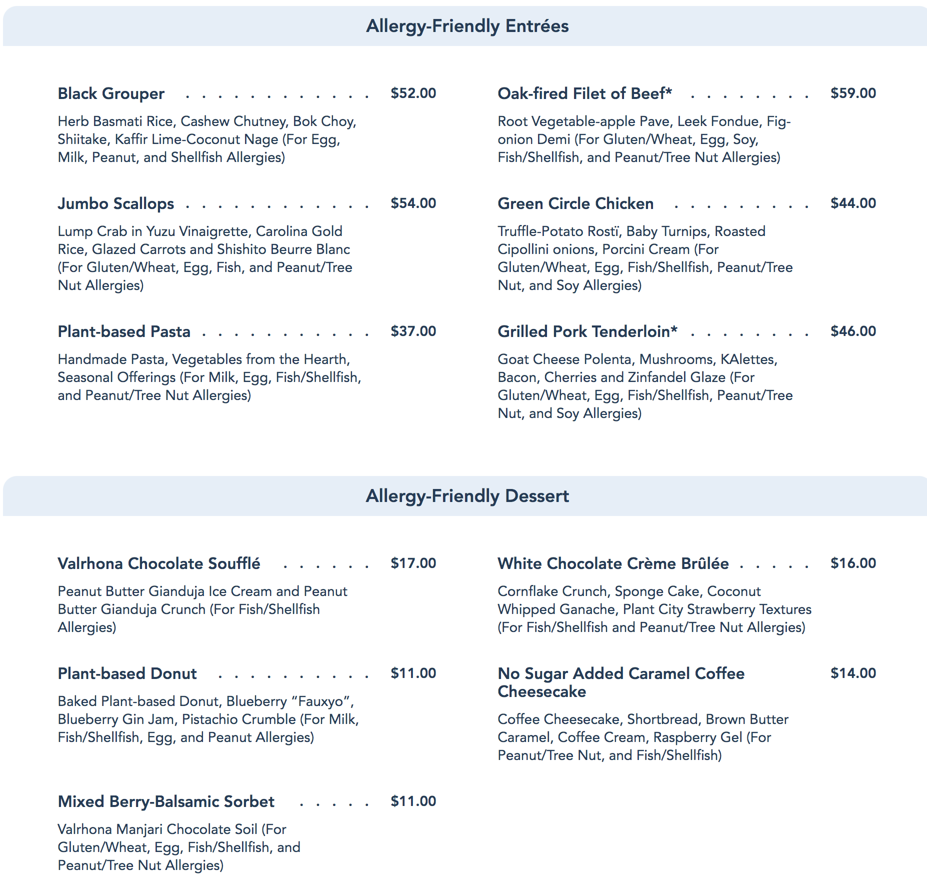 The California Grill is a signature restaurant located at the top of Disney’s Contemporary Resort. It offers sweeping views of the Magic Kingdom and a fine-dining menu. The restaurant reopened with a limited menu and we’ve seen this menu change twice since then. A few more changes have been made since our last update including the addition of rich desserts and new entrees!