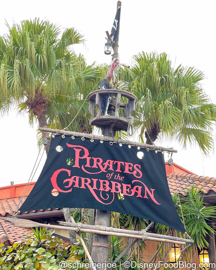 Thanks to @schreiberjoe on Instagram, we got this photo of the updated attraction flag at Pirates of the Caribbean in Disney’s Magic Kingdom. Wow, the red really pops now!
