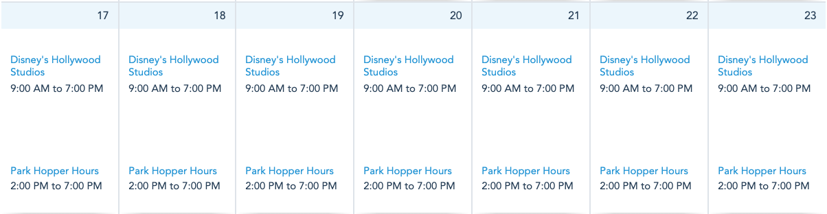 Next week, Disney’s Hollywood Studios will be open daily from 9AM-7PM. Disney’s Hollywood Studios will have park hopping available from 2PM-7PM.