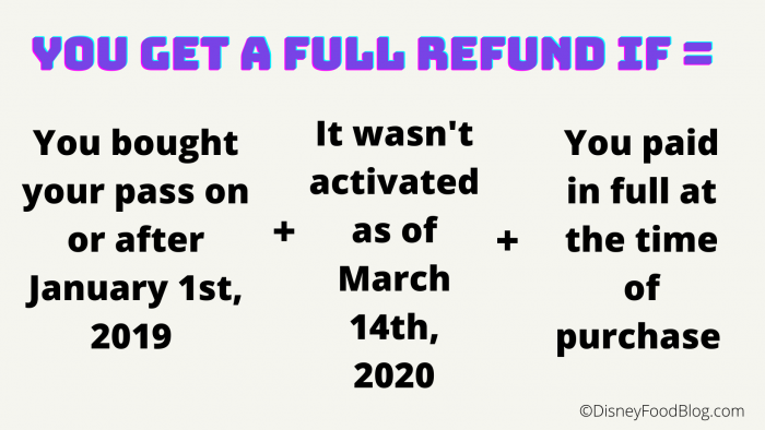 If you purchased your Passport on or after January 1st, 2019, AND it wasn’t yet activated as of March 14th, 2020, AND you paid in full at the time of purchase, then the total sales price will be refunded to you.