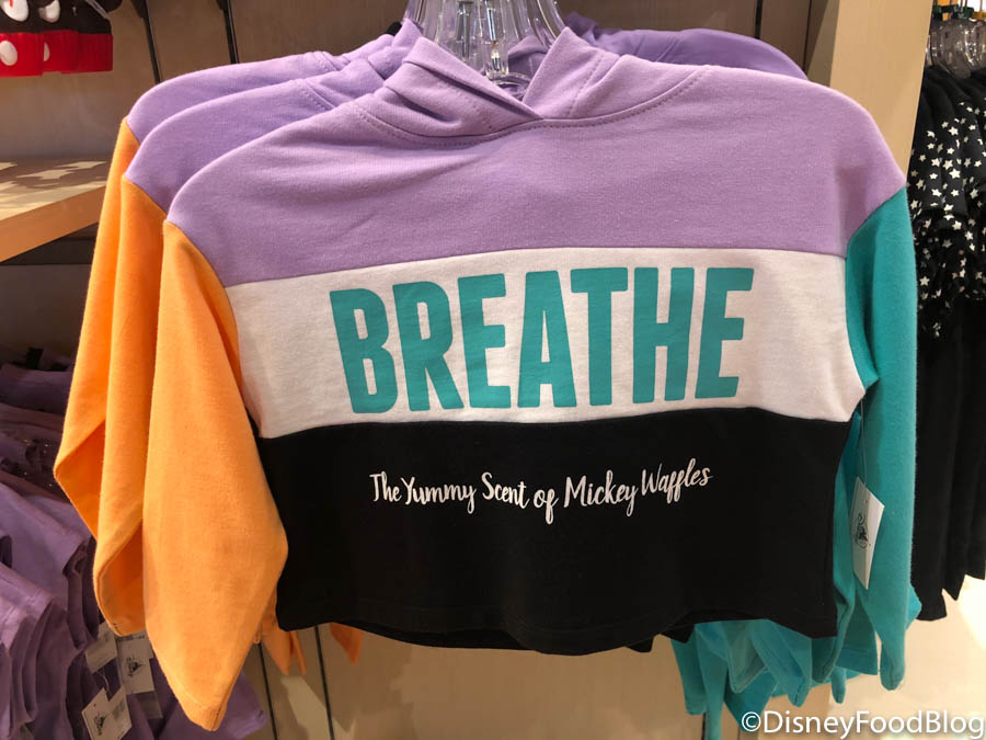 When we saw this sweatshirt that says, “BREATHE — the yummy scent of Mickey waffles,” we truly felt seen. We think this message will resonate with breakfast fans and lovers of Mickey-shaped foods.