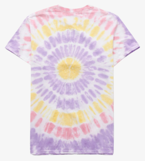 The ice cream cone is centered on a fun, colorful dye-tie print. The back of the shirt features the same tie-dye.