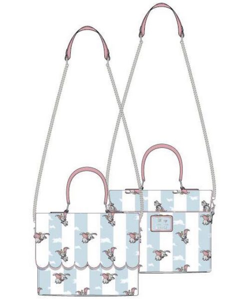 If you’d rather fly up in the sky than swim in the sea, you can pre-order the Dumbo Flying Circus Tent Crossbody Purse! This purse is made of faux leather and features white and blue stripes and everyone’s flying elephant.