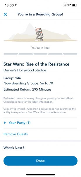 It’s such a hot ticket item that Disney has a special boarding process in place where guests must join a virtual queue to get a boarding group via the My Disney Experience app. TYPICALLY the boarding groups vanish in mere SECONDS…but not today.