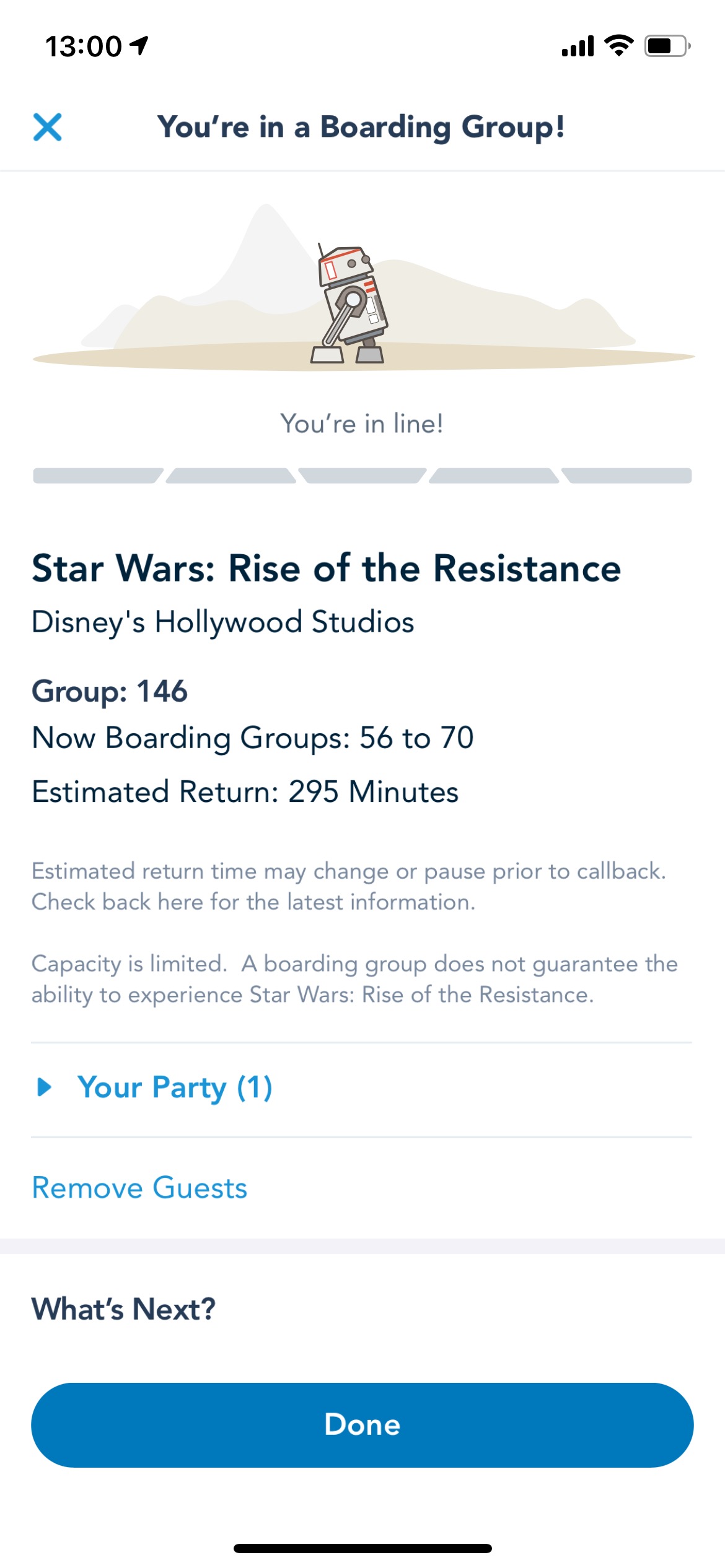 Today, though, when we tried to join the virtual queue right at 1PM, we got a boarding group with no problem!