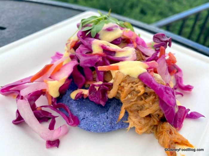 Disney has provided this recipe for the Salvadoran dish of Blue Corn Pupusa stuffed with cheese and topped with shredded pork by way of the Disney Parks Blog, and you can even find a printable version by clicking here.
