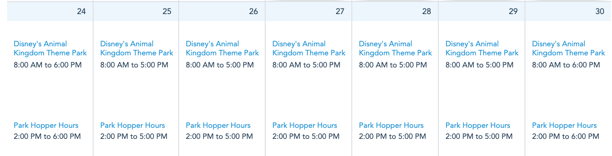 Finally, Disney’s Animal Kingdom will be open from 8AM-6PM on Sunday, January 24th and Saturday, January 30th with Park Hopping available from 2PM-6PM. From Monday, January 25th through Friday, January 29th, Animal Kingdom will be open from 8AM-5PM, with Park Hopping available from 2PM-5PM.