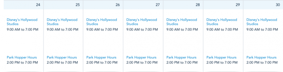 Next week, Disney’s Hollywood Studios will be open daily from 9AM-7PM, with Park Hopping available from 2PM-7PM.