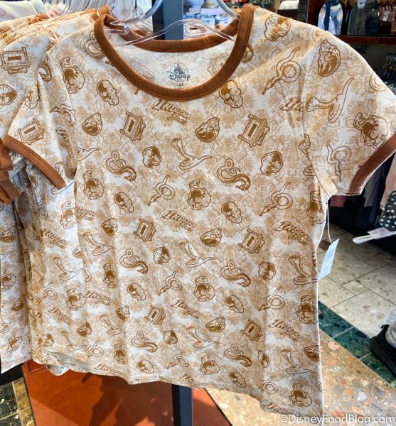 We also spotted this ultra-cool Indiana Jones shirt! The tee shows icons from the movie like snakes (why’d it have to be snakes) and the Golden Idol. The Indiana Jones Epic Stunt Spectacular is currently closed but you can still show off your fandom! The shirt is $36.99.