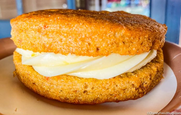 Another one of our favorite snacks that we really REALLY love at Hollywood Studios is the Carrot Cake Cookie. You can find this treat at the Trolley Car Cafe on Hollywood Boulevard — better known as Hollywood Studios’ Starbucks location. This unassuming treat is basically one of our favorite snacks like…ever.