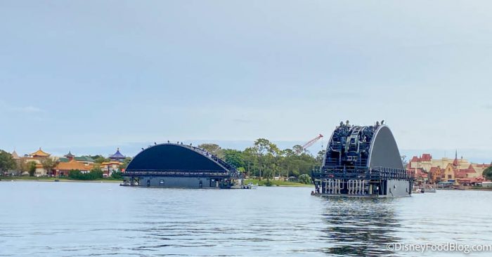 Two barges have been moved into the middle of World Showcase Lagoon where they are currently being tested.
