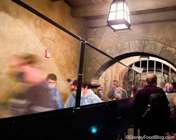 But once we made our way into the inner sanctum, where the line gets tighter and closer, Disney has added a series of plexiglass to ensure guests maintain distance from each other.