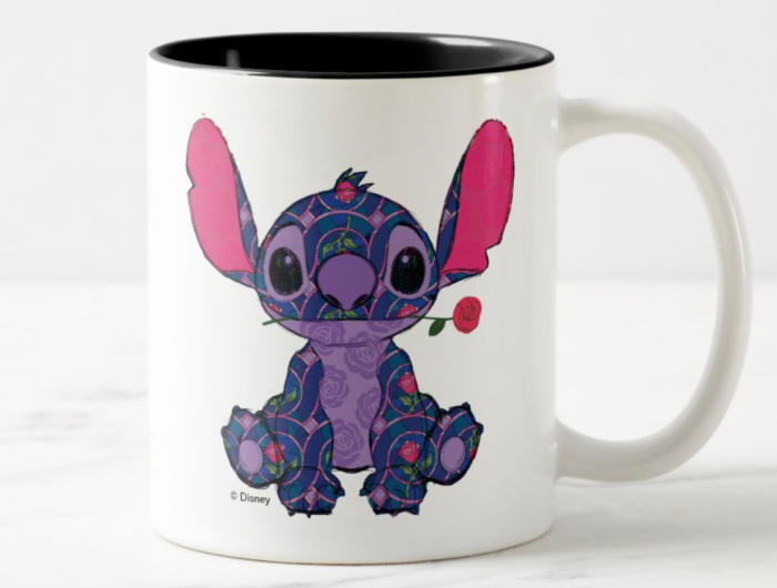 The monthly merchandise collection includes a plush, pin, MagicBand, t-shirt, and mug, and items from the January series all feature Stitch covered in Beauty and the Beast theming from head to toe. Each month, Stitch will “crash” a different classic Disney movie!