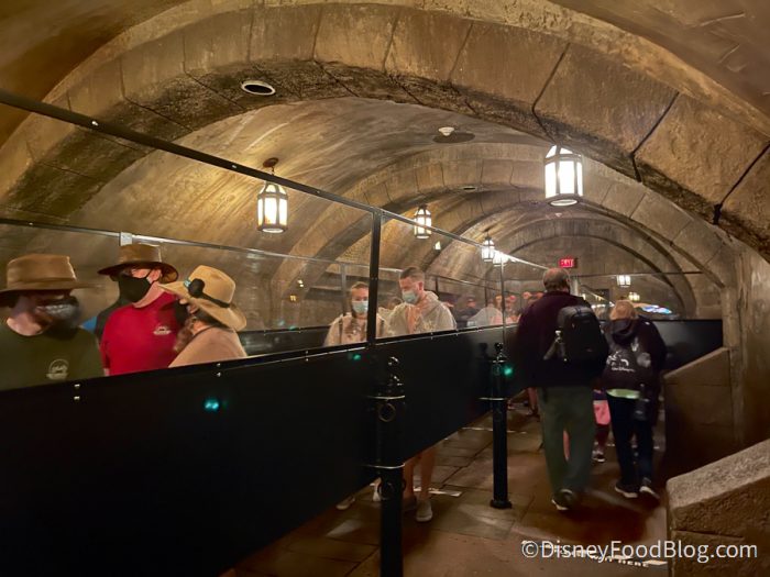 We’re seeing plexiglass EVERYWHERE in the parks these days, and we noticed that Pirates of the Caribbean recently got a plexiglass addition, too, in its queue.