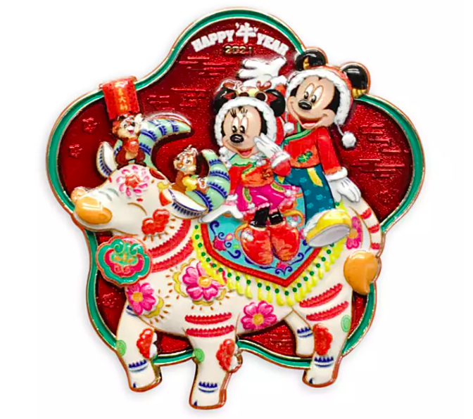 Lastly, the Mickey Mouse and Friends Lunar New Year 2021 Pin is also limited release. It’s the same design as the statue, with Mickey, Minnie, Chip, and Dale on the ox.