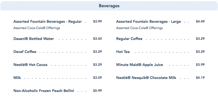 …and there are a few alcoholic beverages for the adults. The menu itself is very boring compared to some other options in Disney’s Hollywood Studios, but let’s see how everything tastes!
