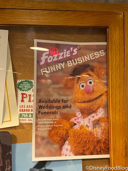 If you are a die-hard Muppets fan, this restaurant is worth a walk-through for the decor alone! There are so many things to look at including this sign for “Fozzie’s Funny Business”…