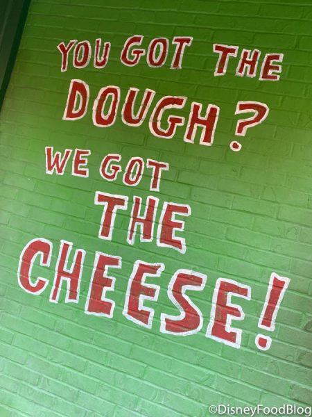 You’ll find hidden (or not so hidden) details from the Muppets throughout the restaurant. There are other fun touches like the “You Got the Dough? We Got the Cheese!” quote on the front of the building. One of our favorite details you’ll only spot at night. (Hint: check out the flashing neon sign near the restaurant!)