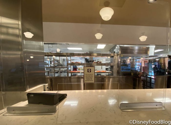 When you step up to the counter, there is plexiglass to prevent contact between guests and Cast Members.