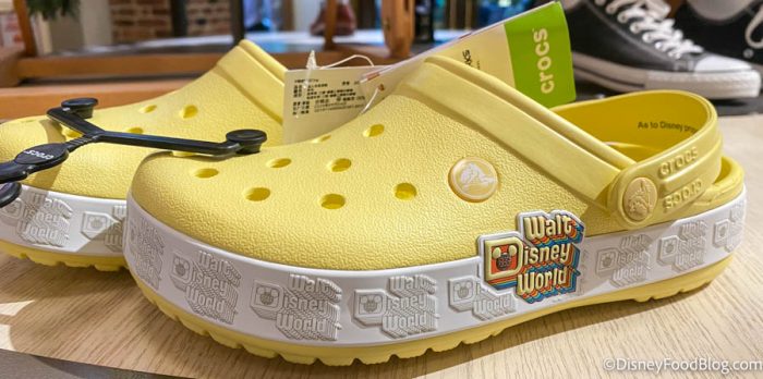 Haunted Mansion Crocs? Check. Super glittery Crocs? Check? Yellow, retro Crocs? If you don’t already have this new pair and you’re looking to add them to your collection, now you can buy the Yellow, Retro Disney World Crocs online!