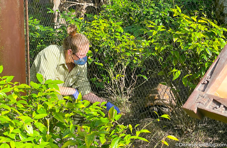 Before we dive into the news though, we wanted to show you a couple of the cool animal sightings we got to experience yesterday! Headed into the park, we spotted a Cast Member feeding our friend the tortoise.