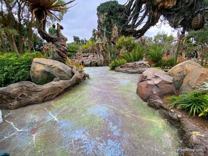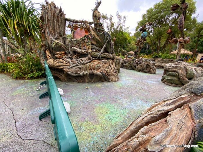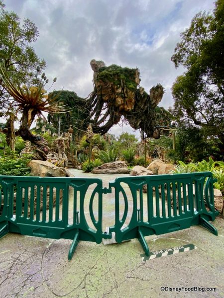 Areas of the pathways were sectioned off to protect recent powdered “paint” work on some of the grounds. After all, as home to the the park’s most popular attraction with Avatar Flight of Passage, you can imagine that it does take some effort — as well as creativity — to keep these grounds glowing with all the foot traffic!