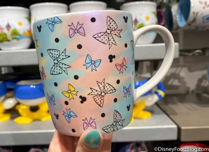 First up is this bow-tifully designed tie-dye Minnie mug! We love the combination of polka dots and Mickey heads on the pastel base. The different colored bows also add a brighter pop of color.