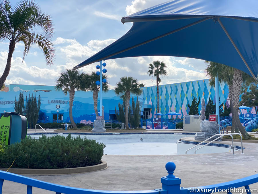 The Big Blue Pool at Disney’s Art of Animation Resort is undergoing its scheduled refurbishment.