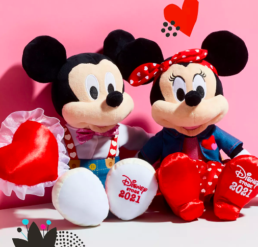 With any shopDisney purchase, you can now get a $14 Mickey or Minnie Valentine’s Day plush! The plushes are in heart-themed outfits, and the bottoms of their shoes say “Disney store 2021.”