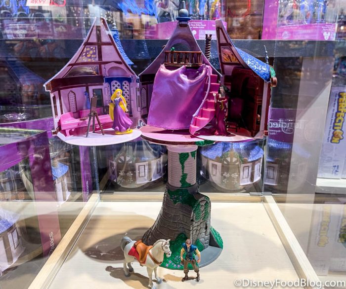 Take a look at the fun Tangled Rapunzel Tower Play Set. The set comes with Rapunzel, Flynn, Maximus, AND Mother Gothel figurines and has all the little details inside the tower. You can spot all of Rapunzel’s artwork on the walls and play out your own great escape from the tower!