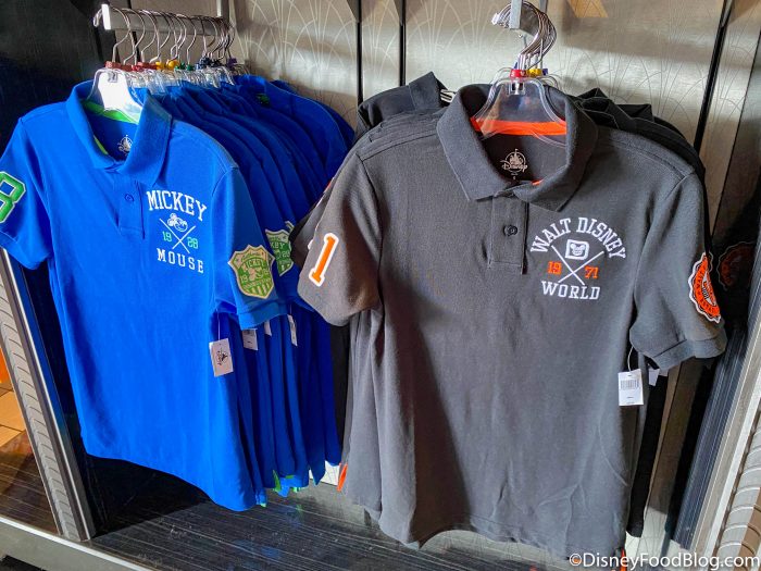 They each have unique patches on the sides, like this “Authentic Mickey Mouse 1928” patch on the blue polo shirt.